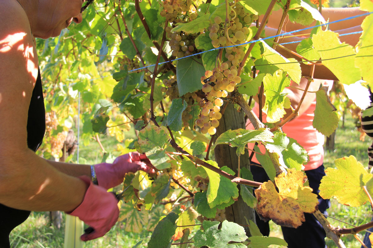 Ici, les vendanges commencent début octobre par la récolte d’une partie du gros manseng pour l’élaboration du Jurançon sec. Ces mêmes vignes, une fois dorées par le soleil, sont de nouveau vendangées un mois plus tard en vue de la production des Jurançons moelleux traditionnels.