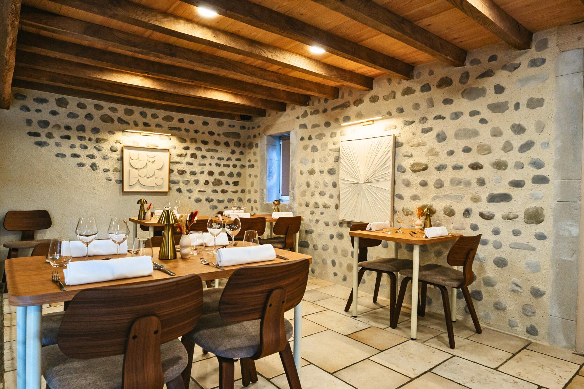 A orillas del bosque, a la entrada del burgo de Monein, pueblo bearnés en el corazón del AOC del Jurançon. El restaurante está a dos pasos de la iglesia St Girons y su armázon único en Francia.
