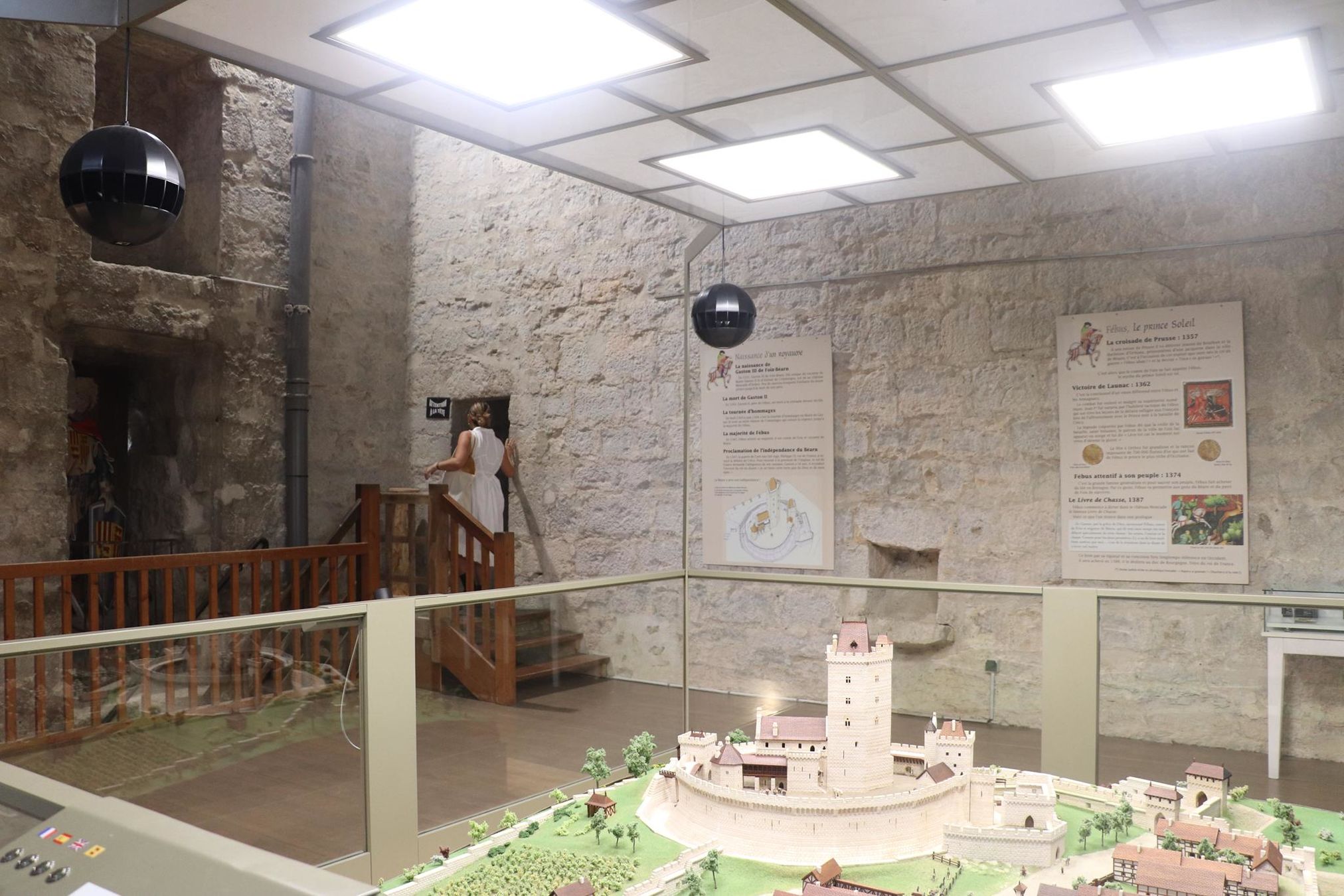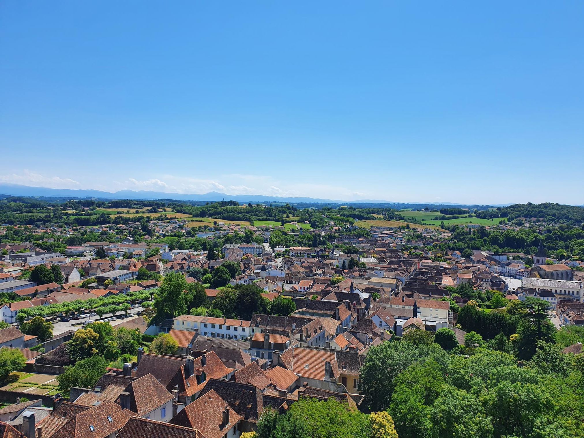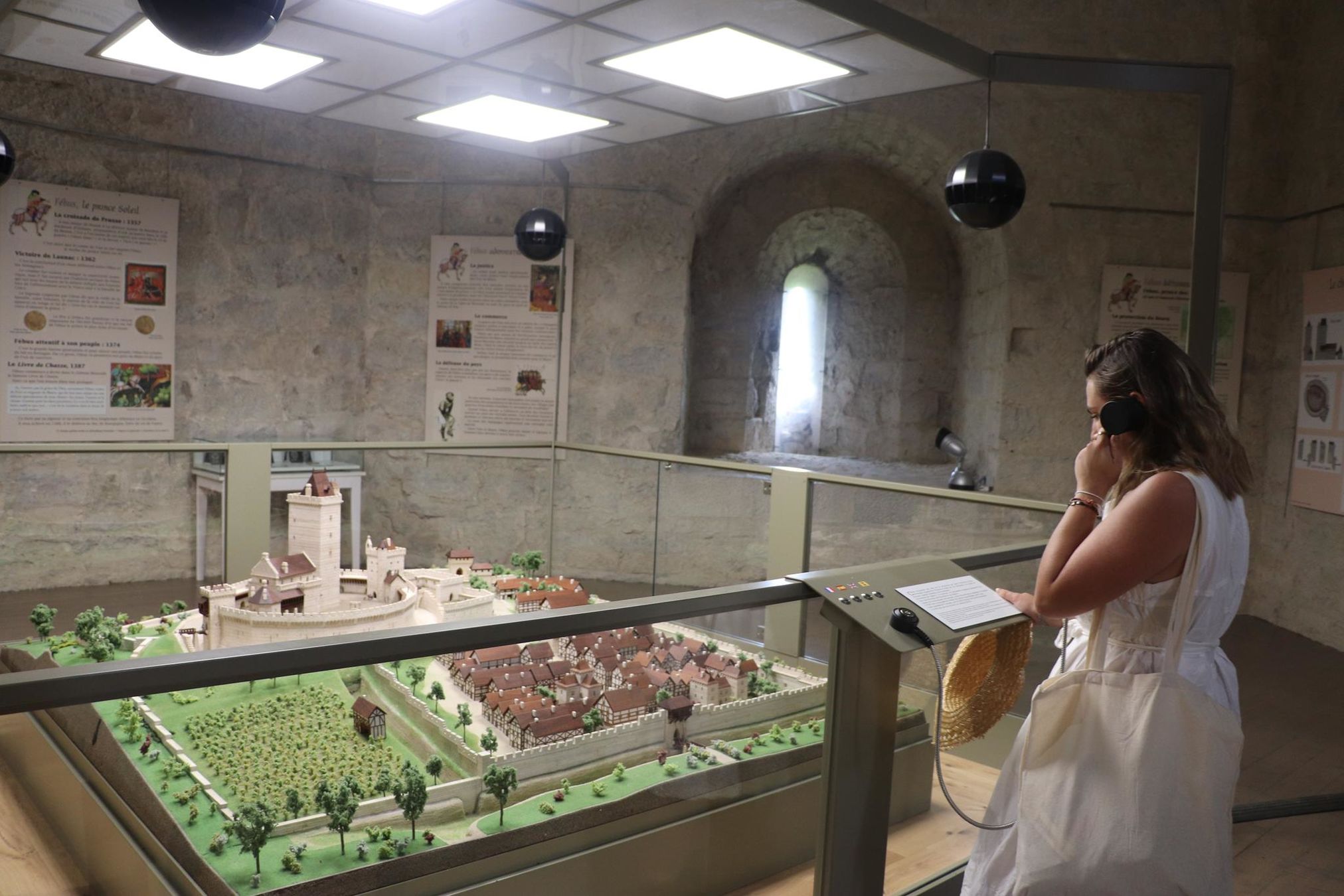 Le Château Moncade domine Orthez et la vallée du Gave de Pau, offrant une vue panoramique sur la vieille ville et les Pyrénées. Il fut pendant 2 siècles la demeure des vicomtes de Béarn. Construit par Gaston VII de Moncade au XIIIème siècle il possède un des premiers fossés maçonnés d'Europe. Remanié au XIVème siècle par Gaston III de Foix-Béarn dit Fébus, il devient le cadre d'une cour fastueuse chantée dans tout l'occident. C'est dans ses murs que Fébus dictera son célèbre livre de la Chasse. Aujourd'hui le donjon est le dernier vestige de ce château et culmine à 33m de haut. Au 1er étage, une salle d'exposition témoigne de ce prestigieux passé avec le fameux livre de chasse, des florins de Fébus et des poids de la ville. Après avoir gravi les 141 marches pour atteindre le sommet du donjon vous profiterez d'un vue exceptionnelle sur Orthez et la chaîne des Pyrénées.