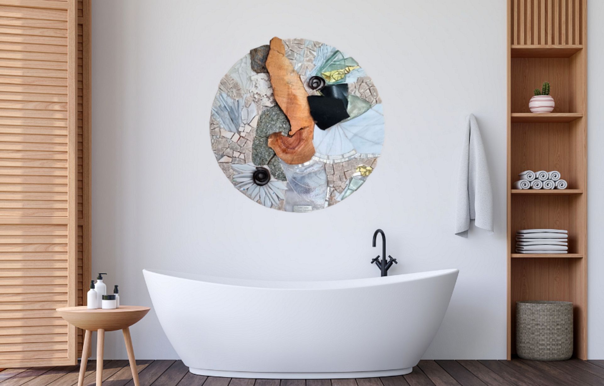 Joëlle crea mosaicos decorativos y artísticos atemporales, coloristas y preciosos, en los que los materiales se mezclan, se casan y se enriquecen mutuamente en mosaicos personalizados, únicos y originales.
