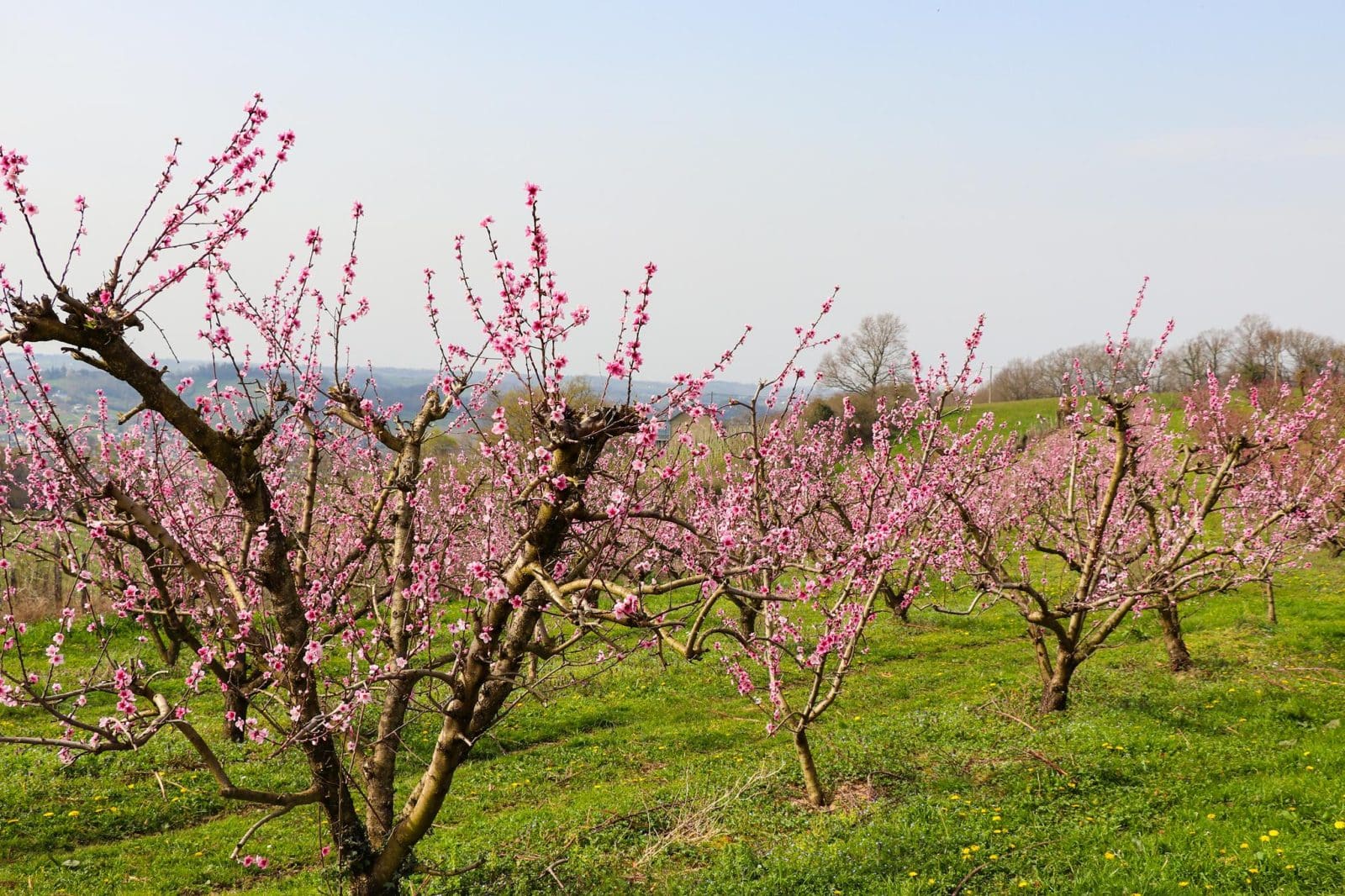 Les vergers commencent à fleurir à la mi-mars, pour une récolte des pêches Roussanne courant juillet.
