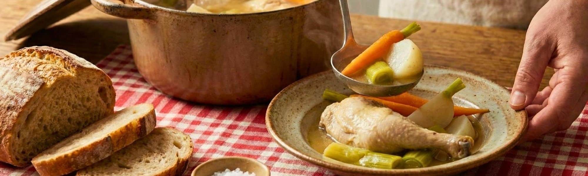 Après ce voyage au cœur de la tradition béarnaise, nous vous proposons de passer derrière les fourneaux. Voici la recette traditionnelle de la Poule au Pot d’Henri IV, simple, authentique et idéale pour régaler toute la famille lors d’un repas chaleureux.