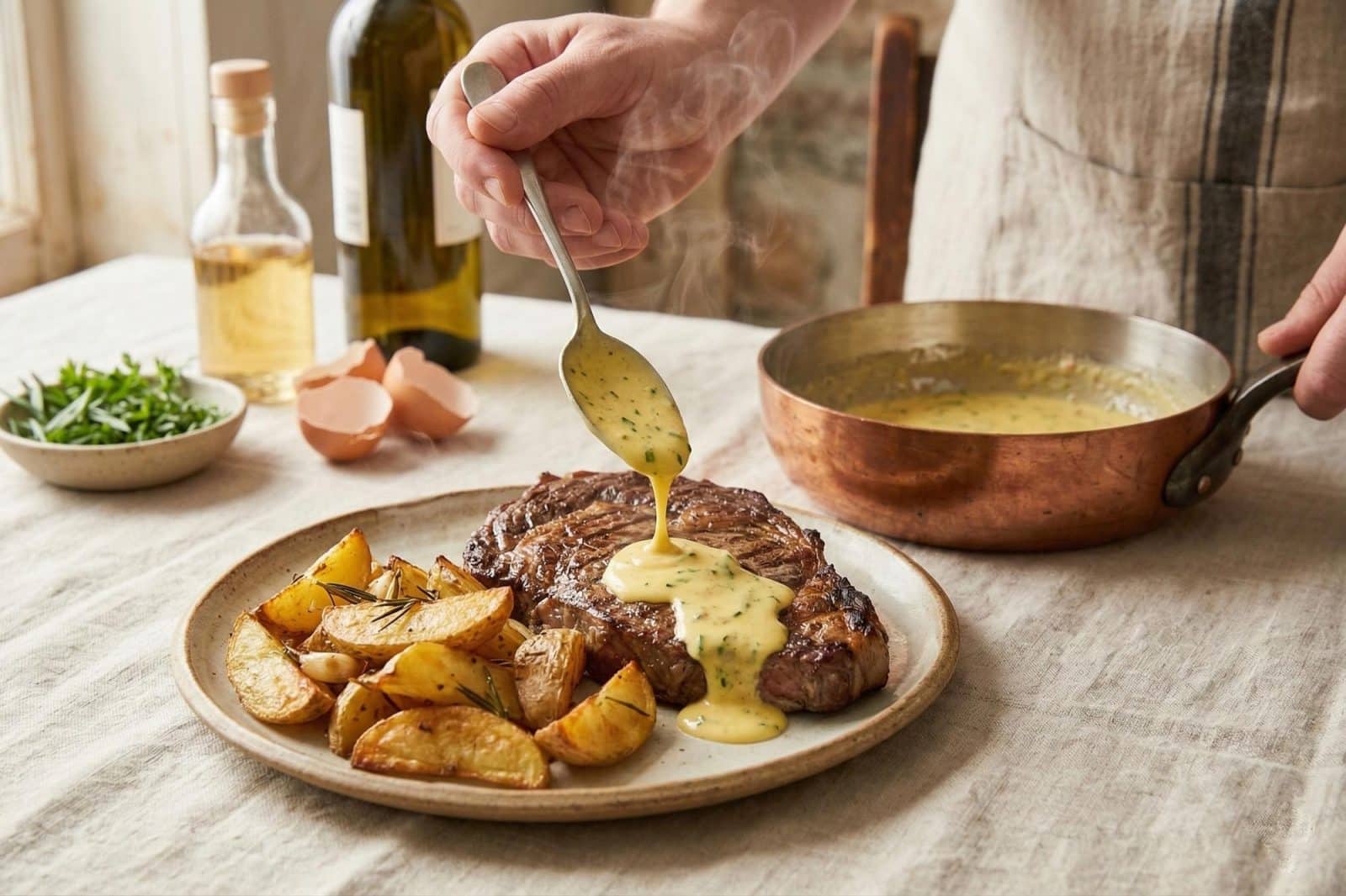 En Béarn, on apprécie son côté franc, sans excès, qui accompagne bien les produits du terroir. Traditionnellement, la sauce béarnaise se sert avec une viande grillée, notamment le bœuf, mais elle peut aussi accompagner un poisson, des légumes ou des œufs. Elle est préparée au moment du service, car elle ne se conserve pas longtemps et n’aime pas être réchauffée.