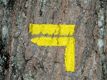 La crête Quitter la route pour un chemin à gauche qui monte raide le long d’une vigne. Continuer à monter à droite sous les châtaigniers. En haut passer devant une grande maison et prendre à droite sur la route. Au stop à gauche marcher 500 m sur la route. Après le château d’eau prendre à droite, remonter puis tourner à gauche devant des maisons. Suivre la crête puis descendre. En bas prendre deux fois à gauche. Descendre puis remonter sur un chemin dans les bois. Continuer à monter sur le petit chemin sous les arbres en face. En haut, prendre à droite sur la route.