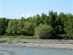 Sortir du bourg, descendre à droite sur le chemin de galets, en contrebas. Rentrer dans la saligue et longer le Gave de Pau sur 800m. Laisser la passerelle sur votre droite (liaison avec Denguin) et rester dans les bois. -