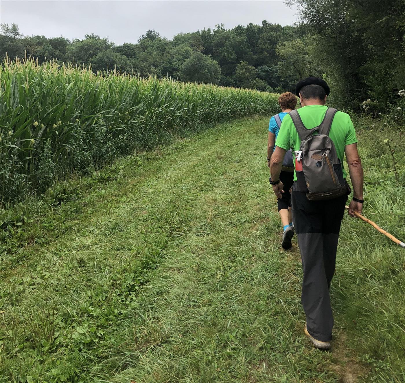 Tourner à droite et 50m plus loin, prendre à gauche en longeant un champ. Traverser le Luzoué par la passerelle et bifurquer à droite sur le chemin du Luzoué. Traverser la D32 et poursuivre en face. Passer un ruisseau à gué, et continuer tout droit sur le chemin. -