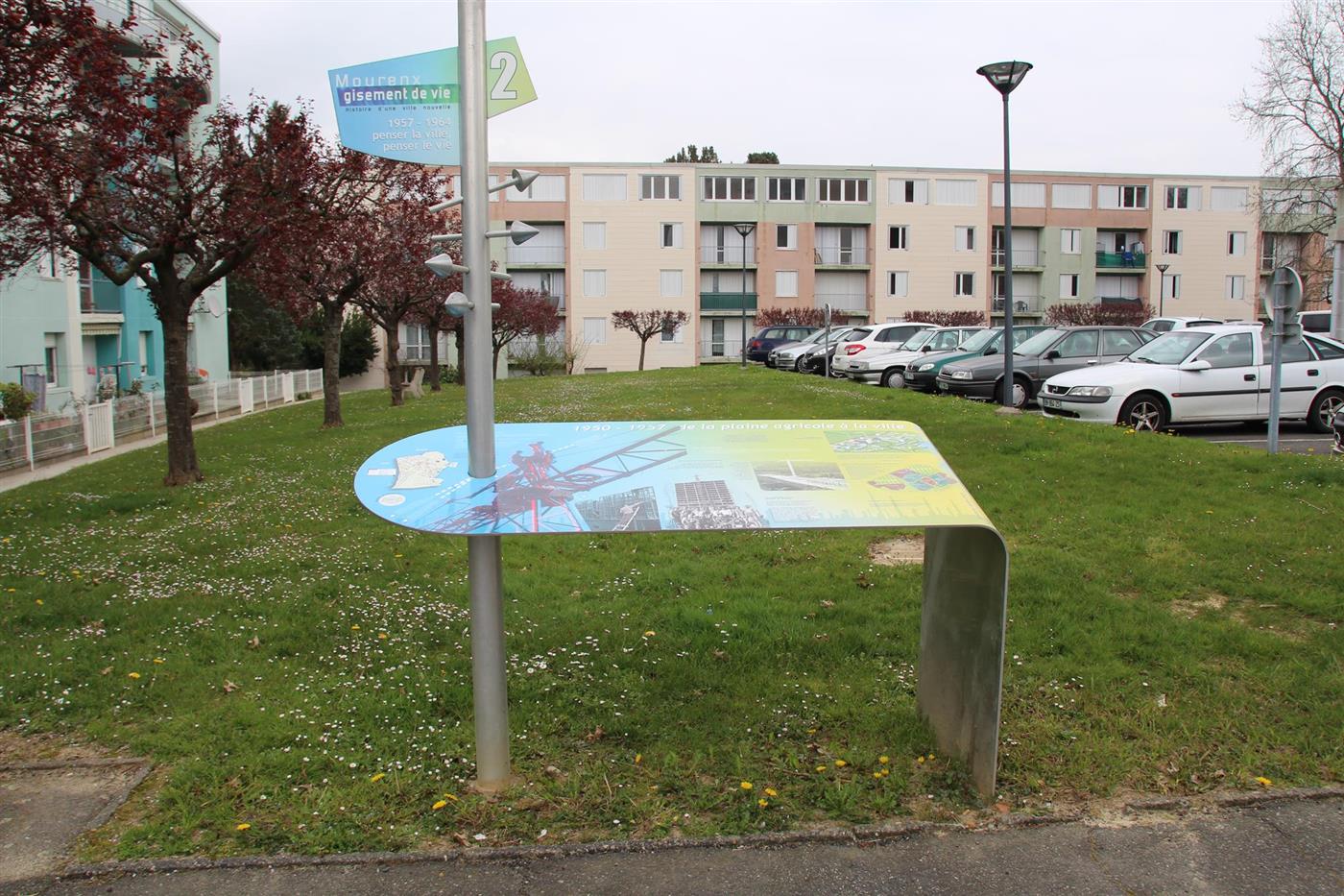 Le sentier d'interprétation de Mourenx traverse les quartiers emblématiques de la ville, dévoilant les lignes sobres et géométriques des bâtiments de la cité-ouvrière et des équipements publics conçus à l’époque de la construction de la ville nouvelle. Le tracé est balisé et jalonné de cinq panneaux d’interprétation qui retracent la genèse de la ville, son lien avec l’exploitation industrielle du gaz et du pétrole à Lacq, et son évolution jusqu’à aujourd’hui :
