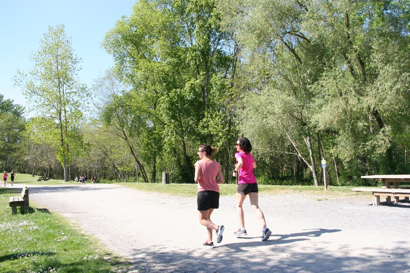 A la patte d'oie, partir à droite sur le chemin empierré et continuer. Passer devant l'aire de jeux et des modules de fitness. Au parking du bas, virer à gauche longer les chalets. Retour au départ.