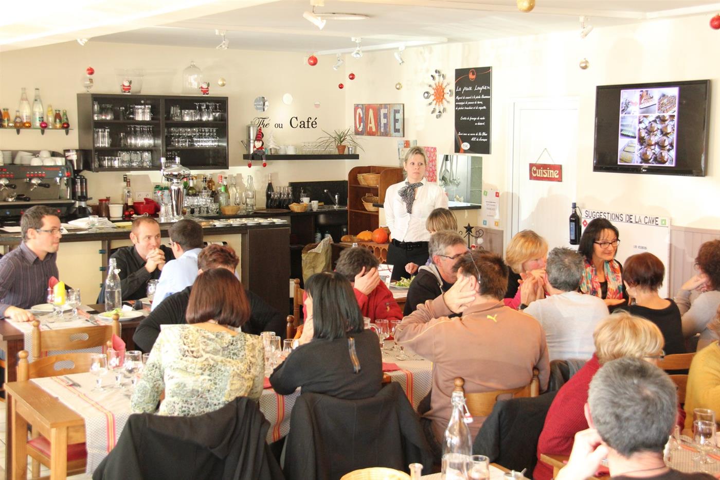 Le chef élabore ses menus quotidiennement en fonction des arrivages du marché et de la saisonnalité des produits. La cuisine privilégie les circuits courts et travaille essentiellement avec des producteurs locaux pour garantir la fraîcheur des assiettes. Le midi, le choix s'offre généralement à vous entre un plat de poisson ou de viande. Les amateurs de viandes rouges apprécieront particulièrement la côte de bœuf et l’entrecôte, proposées à la carte tout au long de l’année. Le repas se termine sur une note gourmande avec des desserts classiques, notamment les tartes aux fruits.