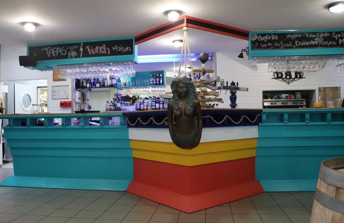La carte du Louisabella offre une large diversité de choix pour satisfaire tous les appétits. Pour commencer ou pour partager, une sélection de tapas est proposée, incluant cuisses de grenouilles, calamars en persillade ou fritures d'éperlans. Les plats principaux naviguent entre terre et mer. Vous pourrez y déguster des goujonnettes de sandre au beurre blanc, un pavé de merlu à la crème de coco ou une fricassée de poulet aux saveurs des îles. Le midi, un menu du jour est disponible pour les déjeuners plus rapides. Une carte de cocktails exotiques accompagne ces mets.