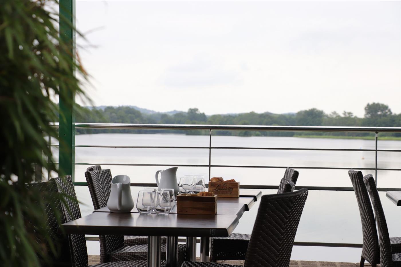 L'expérience visiteur repose avant tout sur l'environnement du restaurant. La terrasse offre une vue panoramique sur le lac, idéale pour admirer le coucher du soleil lors des soirées d'été. En intérieur, la décoration boisée et végétale assure une atmosphère chaleureuse et authentique. Le lieu est propice à la détente mais aussi au divertissement. Les dîners sont régulièrement rythmés par des animations, des concerts ou des soirées dansantes, transformant le repas en un véritable moment de fête au bord de l'eau.