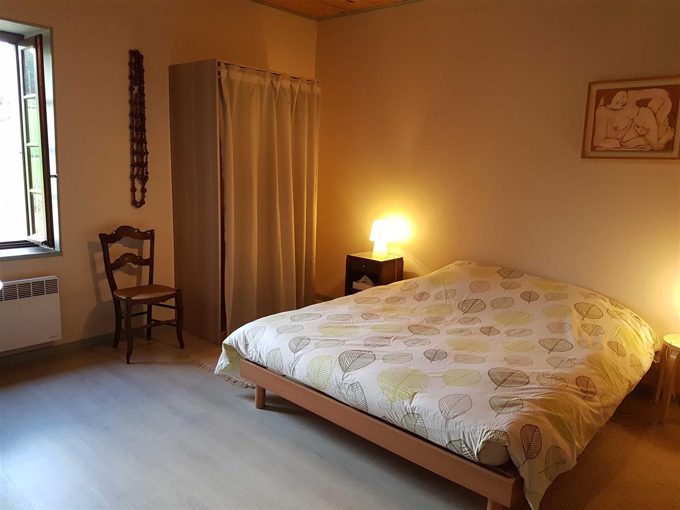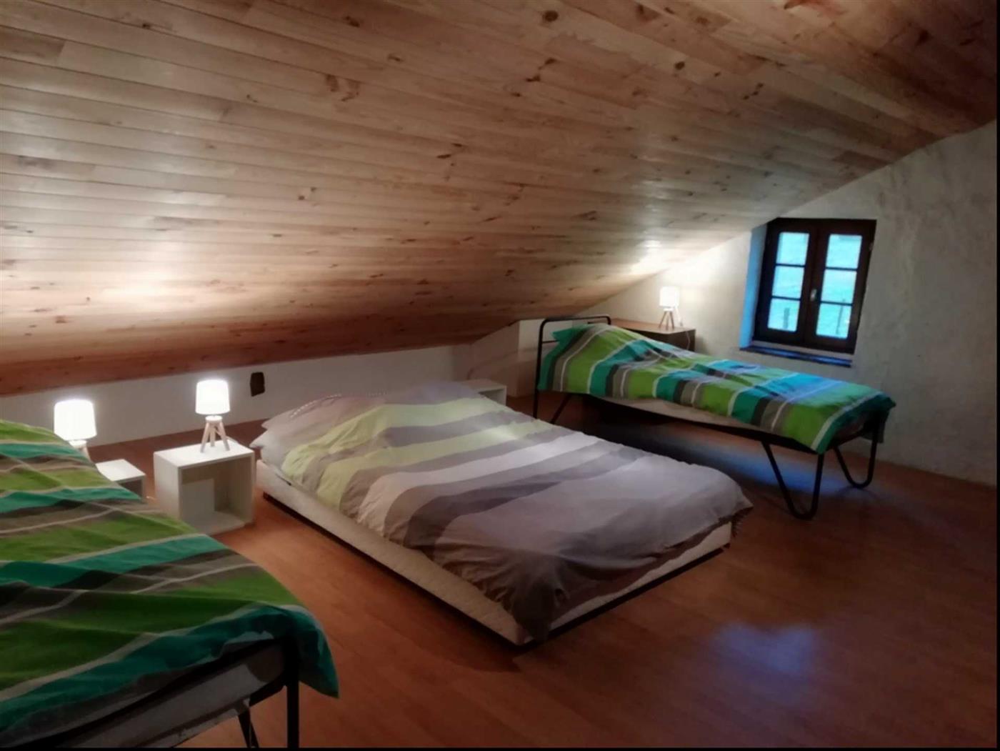 A l'étage, 2 chambres communicantes (1 lit 160, 1 lit 140 et 2 lits 90).