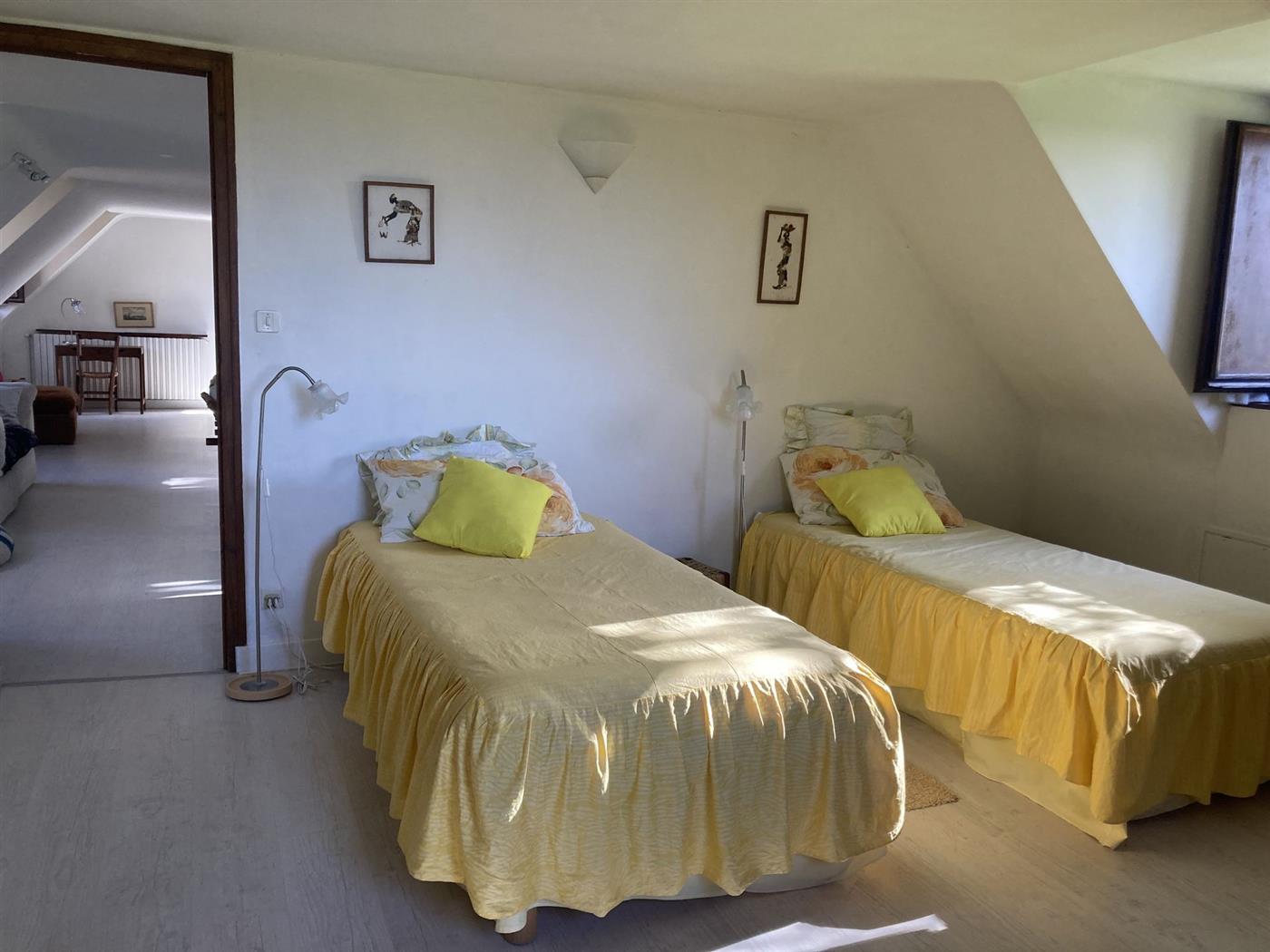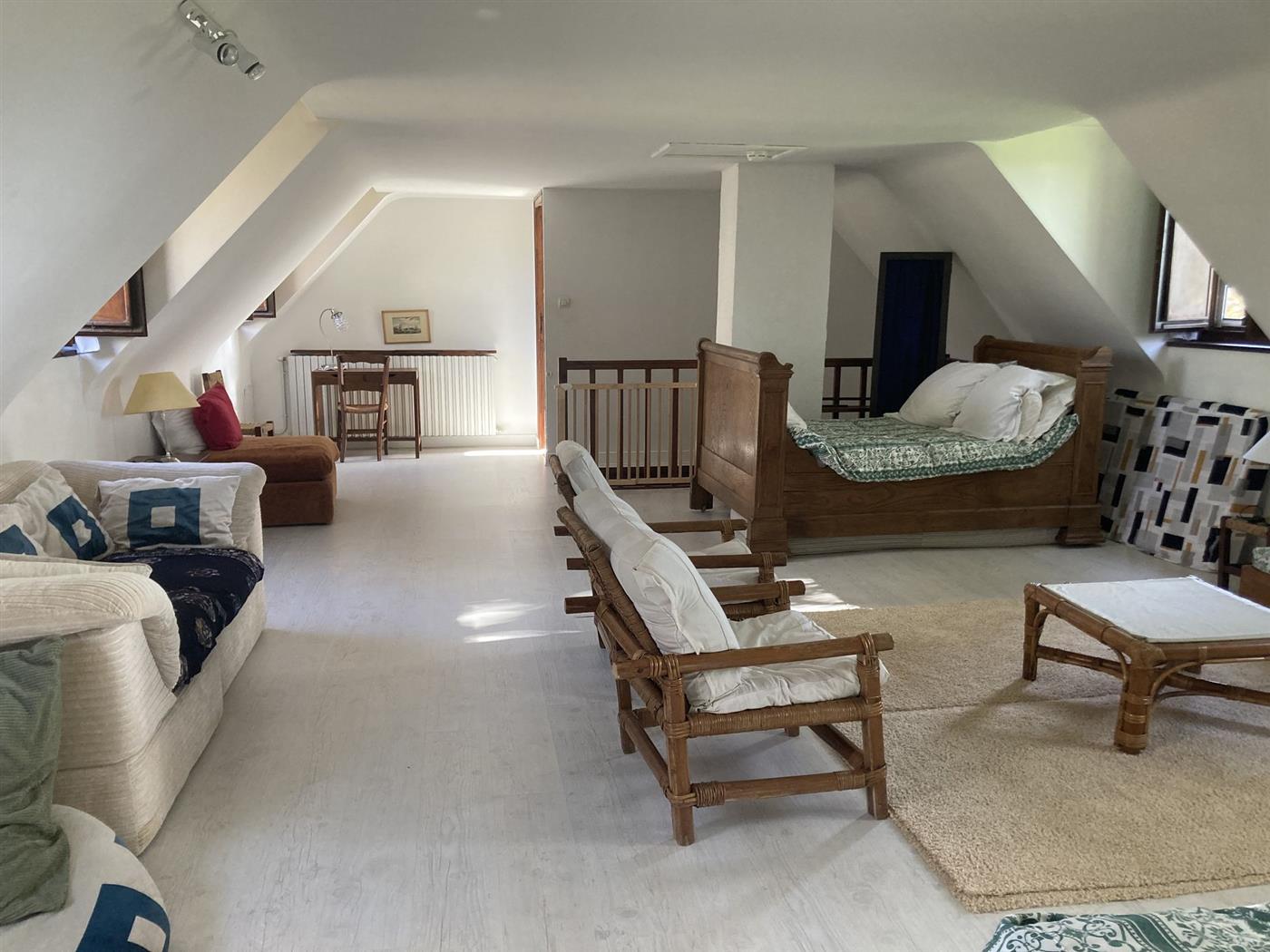 Maison indépendante sur 2 niveaux. Au rez-de-chaussée, une cuisine totalement équipée, un salon/séjour ouvrant sur une véranda avec coin lecture, 1 chambre avec lit double, une salle de bain et wc indépendants. A l’étage, une grande mezzanine aménagée avec canapé lit et bibliothèque distribuant 1 chambre avec 2 lits simples et 1 chambre avec lit double, chacune étant équipée d'un coin toilette. Parc clôturé de 2000 m², barbecue et garage privé.