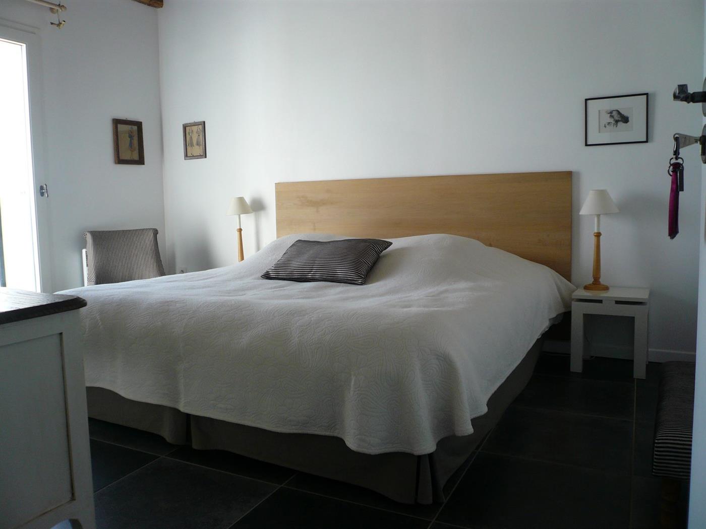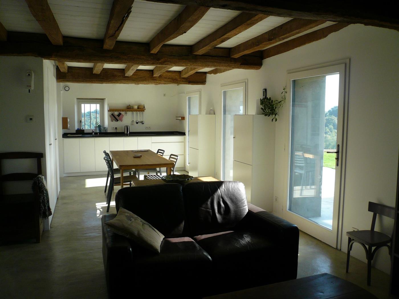 De plain-pied, le gîte dispose d'un coin cuisine équipé, un salon, 2 chambres avec wc (une avec lit en 160 et une avec lit en 180 ou 2 lits en 90) et d'une salle de bain chacune.