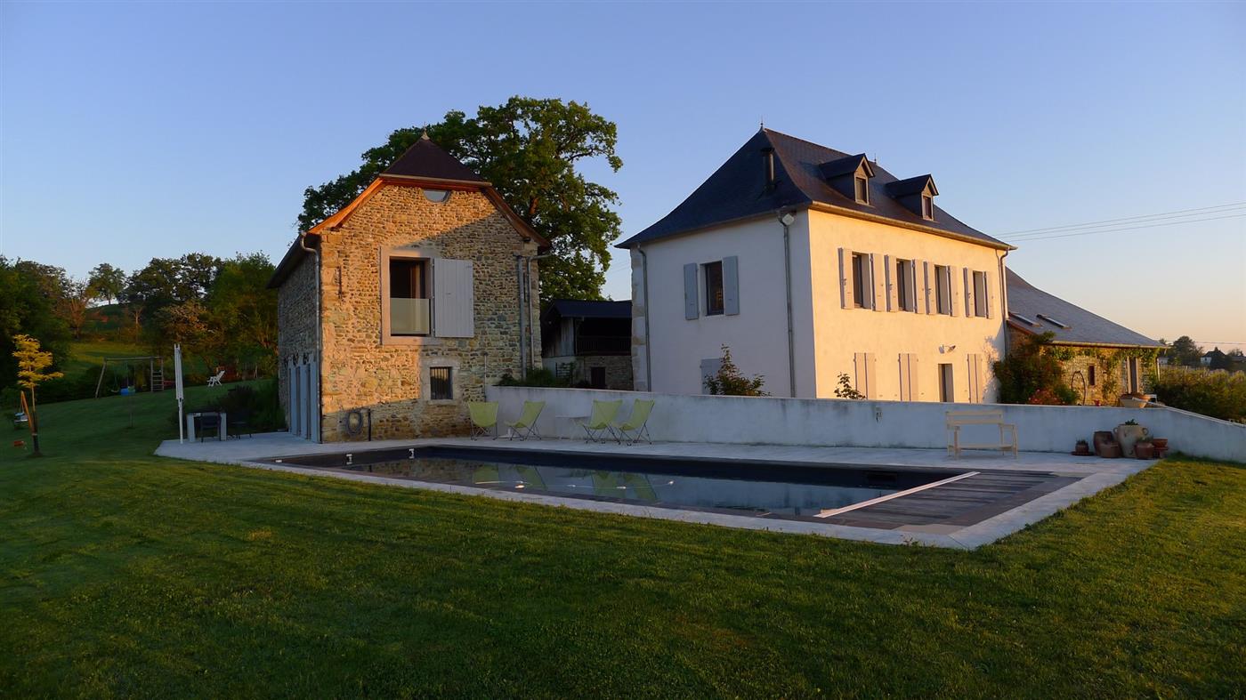 Séjournez au gîte de Lamarquette à Lucq-de-Béarn, une bâtisse béarnaise de charme dans le domaine du Jurançon avec piscine et vue sur les Pyrénées.