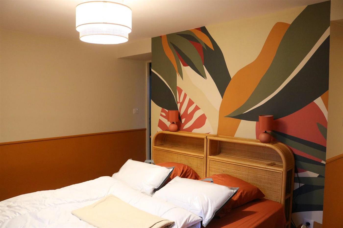 2 Chambres : l'une avec un 2 lits modulables en 1 grand lit et l'autre avec 4 lits superposés modulables soit en 4 lits individuels, soit un grand lit 2 pers en bas et 2 lits individuels en haut.