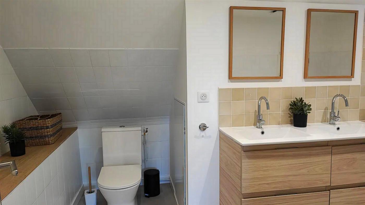 2 chambres avec 2 lits simples et 2 lits doubles et 1 convertible pour 2 personnes.