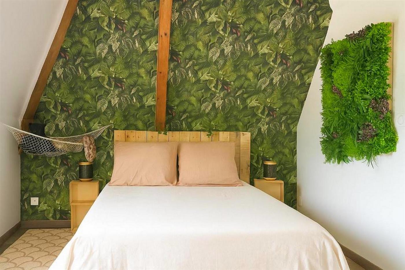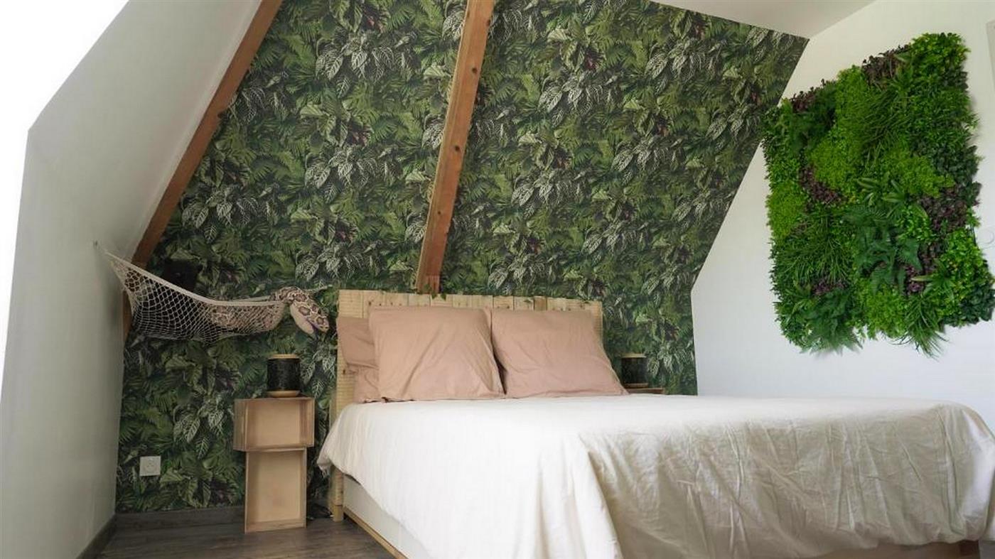 Une suite parentale végétale sous les toits, esprit jungle et détente.