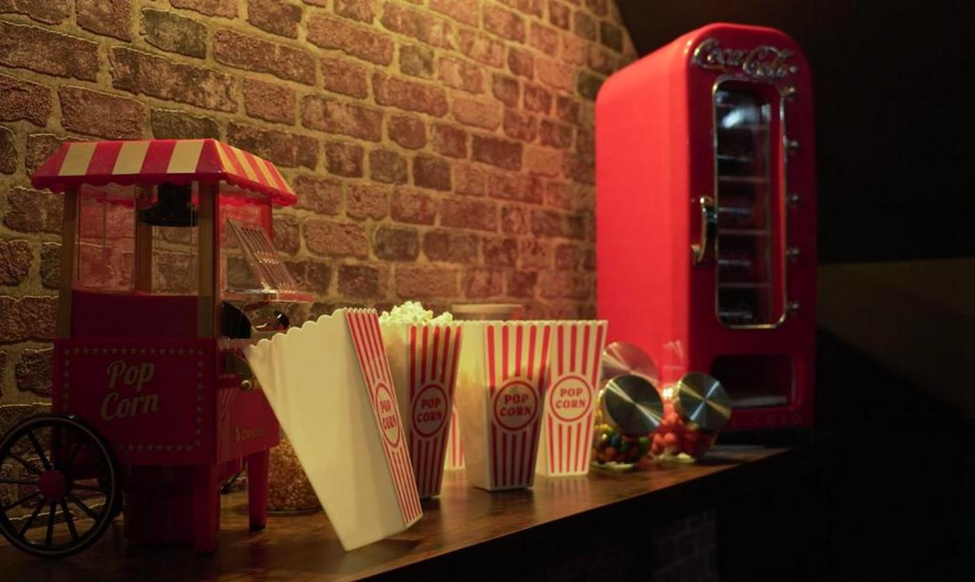 Une pièce est spécialement dédiée au 7ème art, profitez d'une salle de cinéma privative rien que pour vous ! Ambiance tamisée, grand écran, son immersif, canapé moelleux… Confiseries et boissons sont à disposition pour créer votre propre séance.
