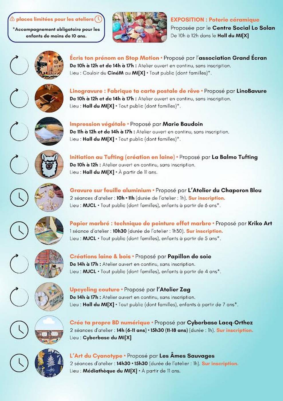 10h et 11h : 2 séances d’atelier gravure sur feuille d'aluminium proposées par L’ atelier du Chaperon Bleu (durée de l’atelier 1h) à partir de 6 ans.