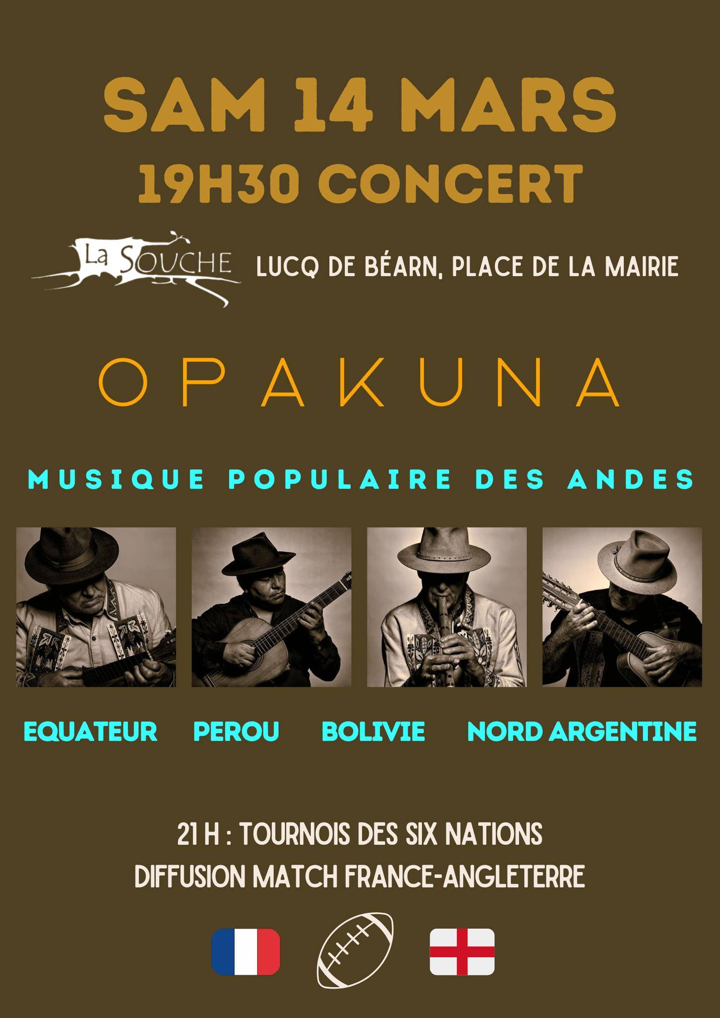 Des volcans enneigés d'Equateur jusqu'aux confins désertiques du nord-ouest argentin, en passant par les vallées du Pérou et l'altiplano bolivien, l'ensemble OPAKUNA vous propose un voyage musical à travers les terres andines. Un voyage à la découverte des instruments et rythmes de ces régions, une approche des cultures musicales des populations de la cordillère des Andes, fruits du métissage des traditions indiennes, européennes et même africaines.