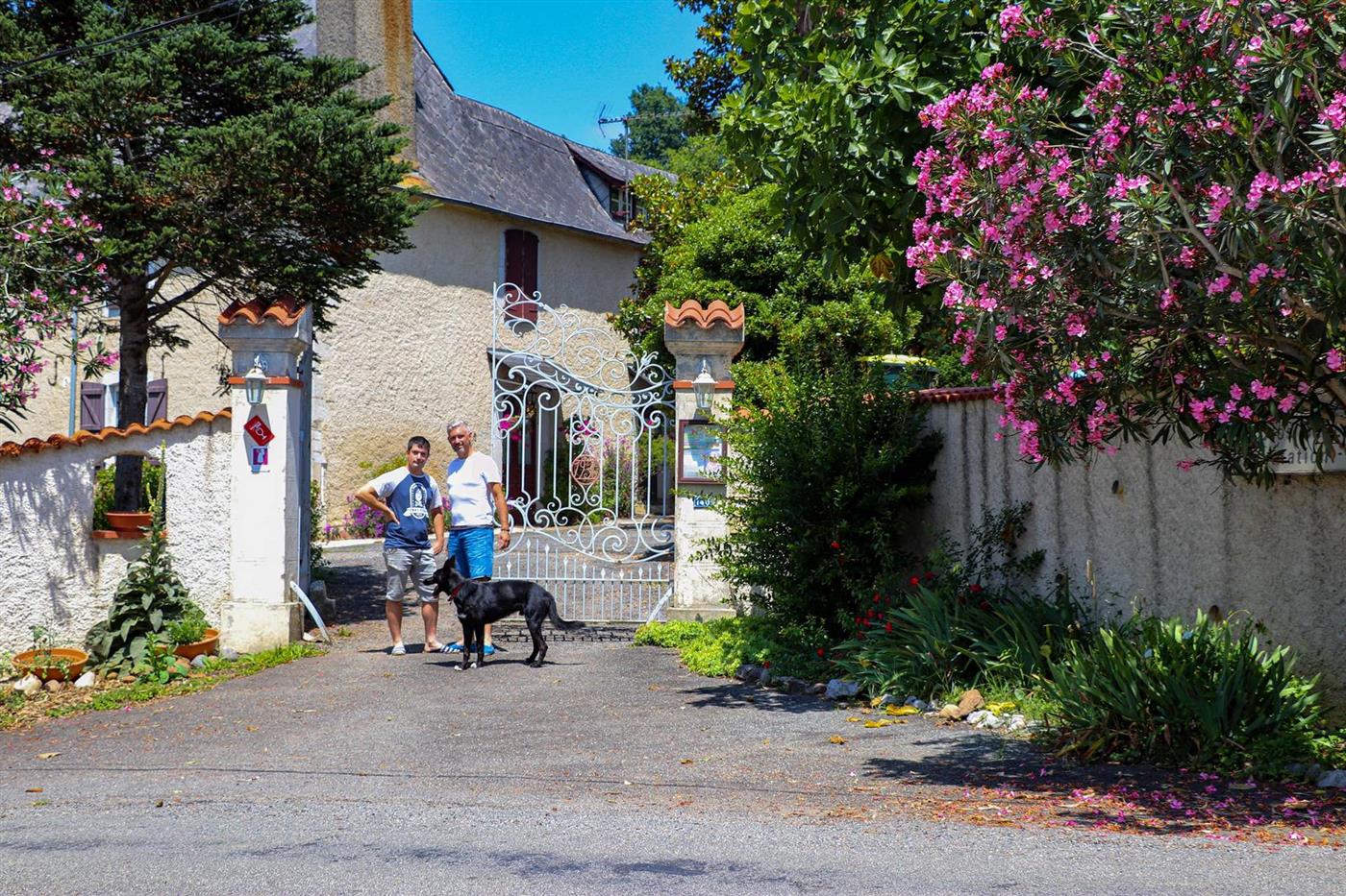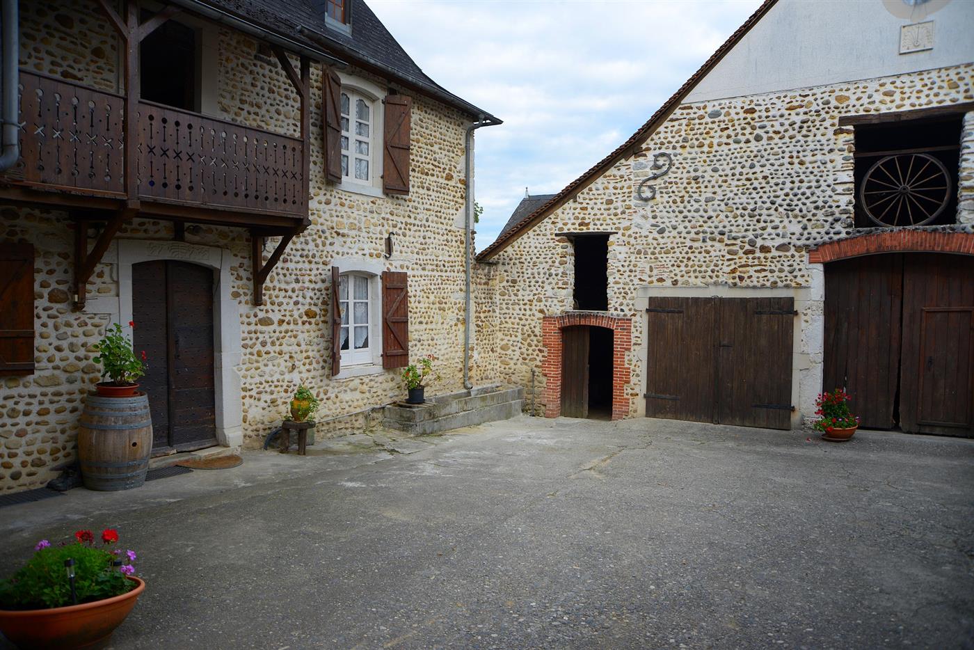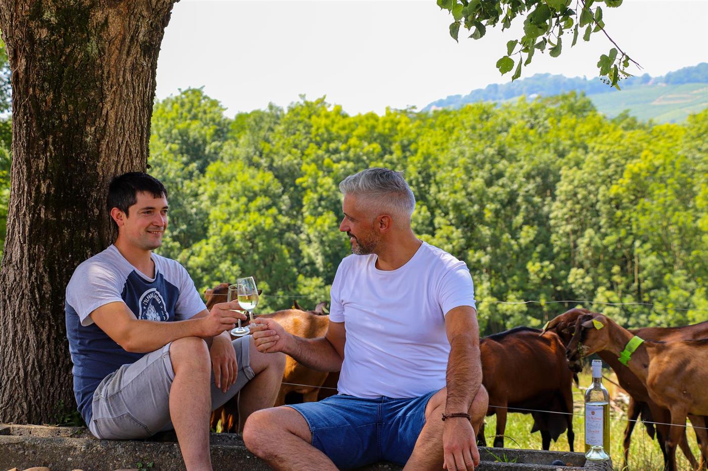 Le Clos Bellevue se dresse sur les coteaux de Cuqueron, à trois kilomètres de Monein. Cette propriété historique, bâtie en galets apparents, appartient à la famille Muchada depuis 1789. Aujourd'hui, les frères Olivier et Romain perpétuent l'héritage familial sur ce domaine labellisé "Destination Vignoble". L'exploitation associe viticulture en AOC Jurançon et élevage, face à un panorama exceptionnel sur la chaîne des Pyrénées.