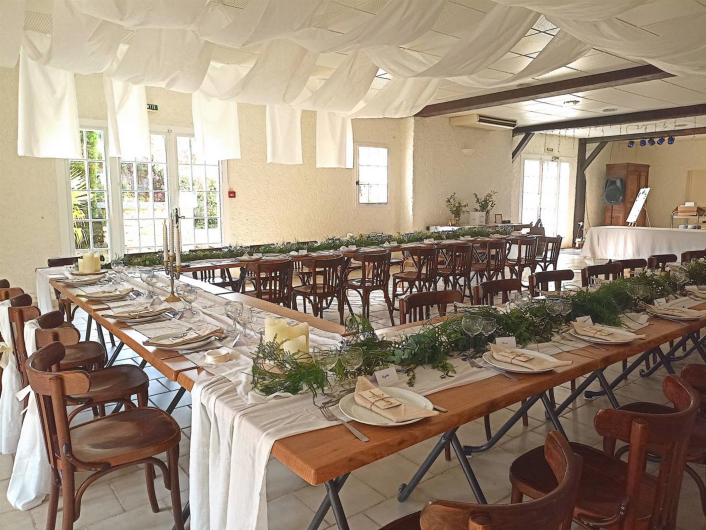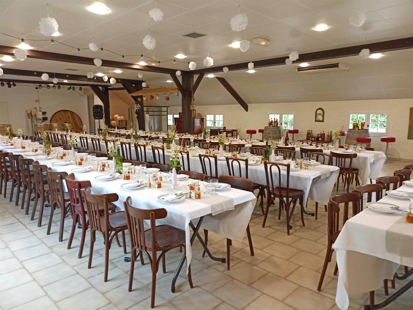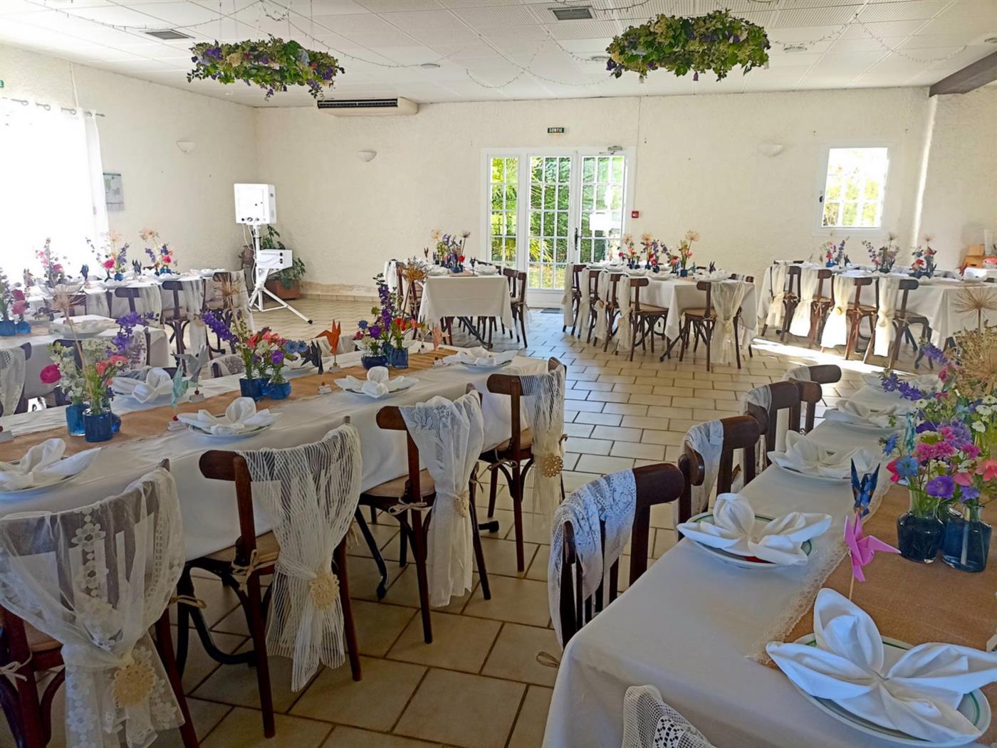 Pour l'organisation de votre mariage , profitez du très bel espace qu'offre le Coq en Pâte ! La salle de réception, équipée de matériel de sonorisation, de tables et de chaises, s'ouvre sur une cour intérieure fleurie où vous pourrez organiser votre vin d'honneur. Les cuisines proposent des espaces de travail entièrement équipés : vaisselle, cuisinière, chambre froide, lave-vaisselle et four professionnels. Un grand parking permet d'accueillir vos convives. Vous pourrez également profiter du gîte et de ses trois chambres pour recevoir vos proches en toute intimité.