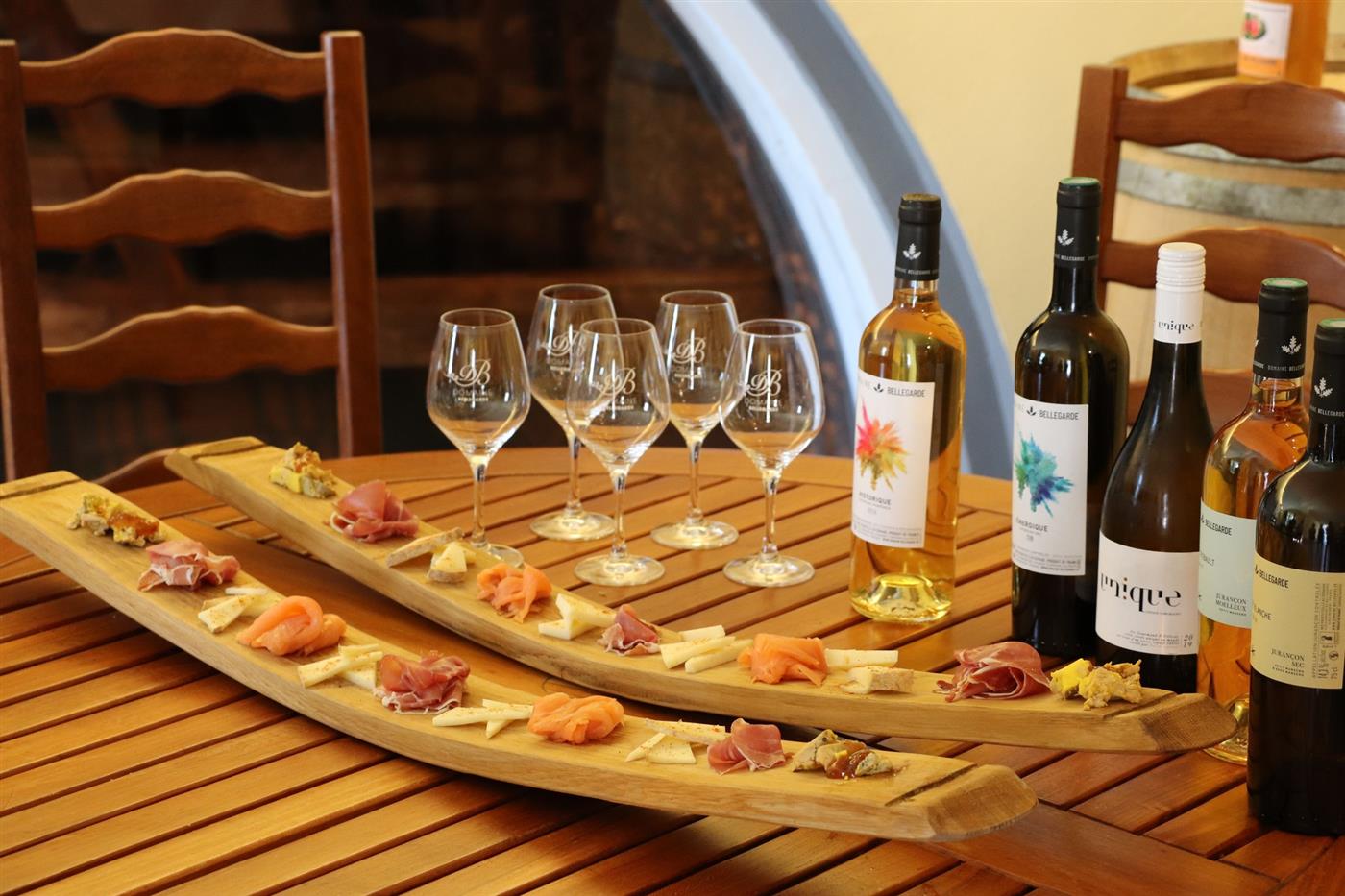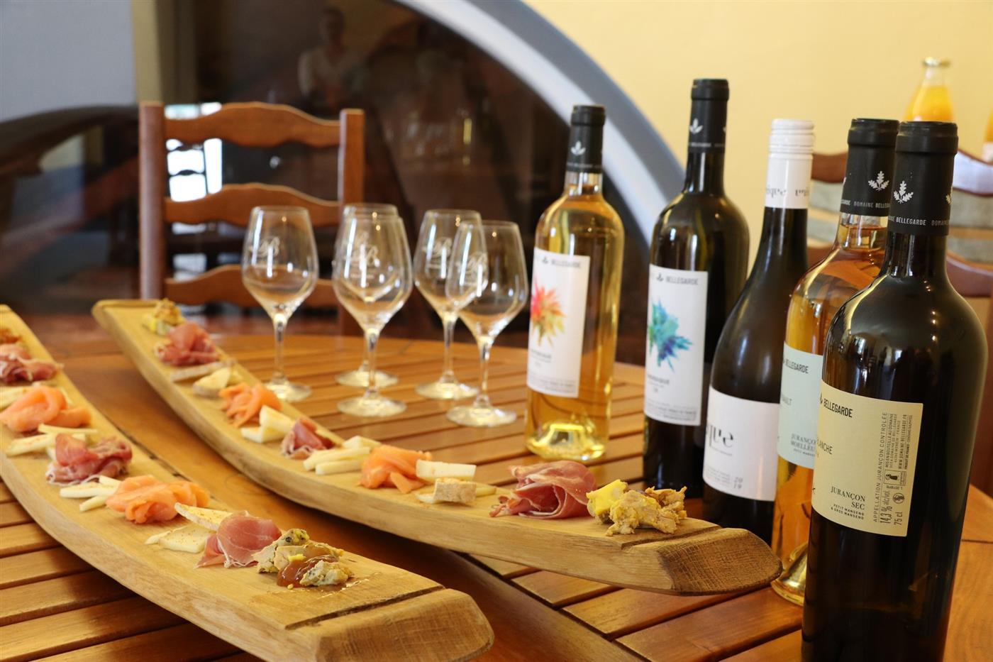 Situé à la sortie de Monein, sur la route d'Oloron-Sainte-Marie, le Domaine Bellegarde domine les coteaux du Jurançon. Pascal y perpétue l'histoire familiale depuis 1985 dans un cadre naturel majestueux. Ce vigneron indépendant produit ses propres vins tout en offrant aux visiteurs un panorama exceptionnel sur la chaîne des Pyrénées.