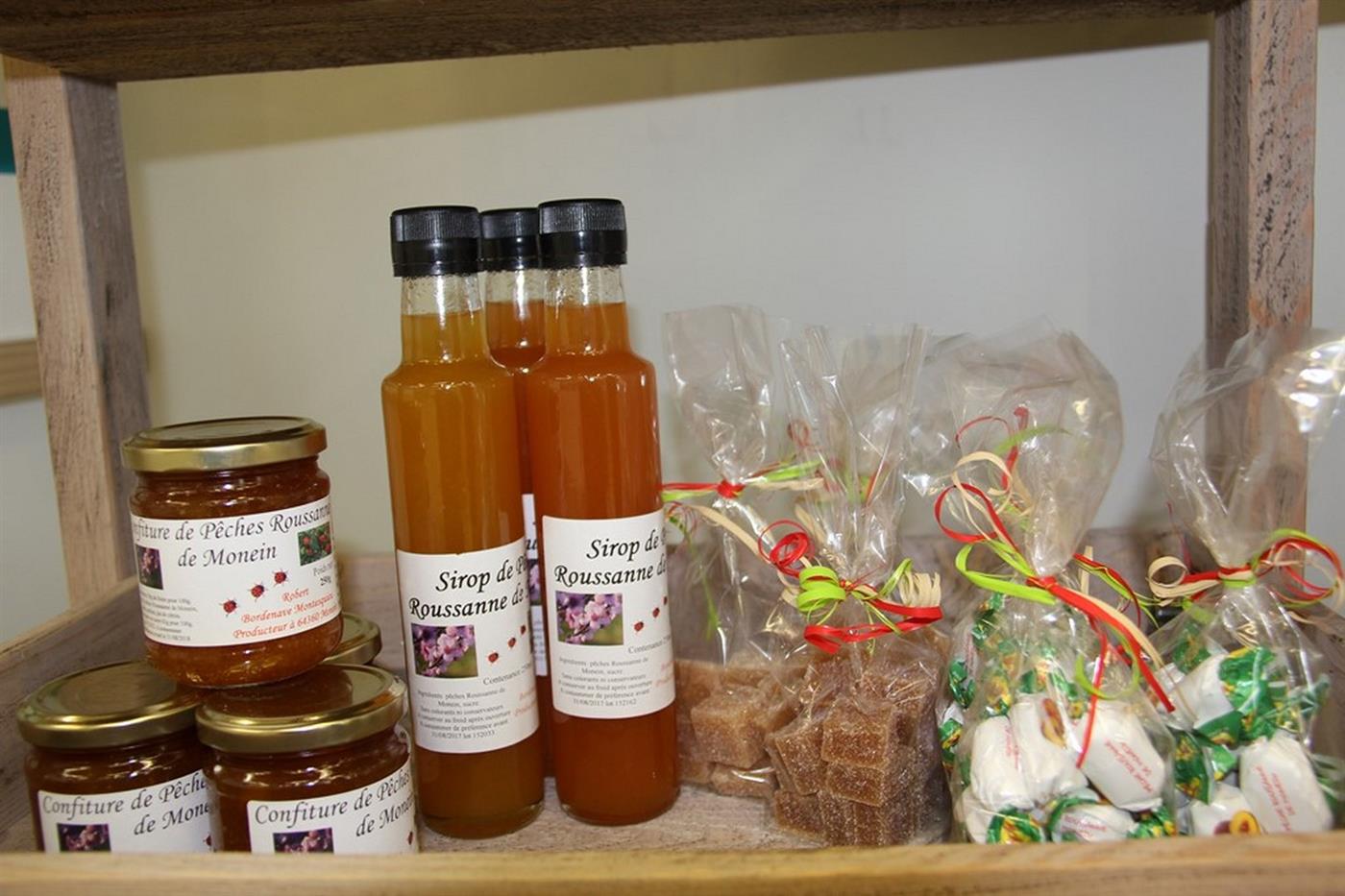 Robert Bordenave Montesquieu est un producteur de pêches Roussanne à Monein. Il vous ouvre les portes de son exploitation et de son verger. En été vous pouvez acheter des pêches fraichement cueillies et des produits dérivés (confiture, bonbon, nectar...) toute l'année.